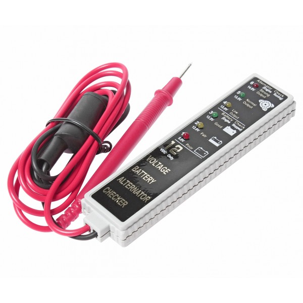 - Для проведения замеров корпус индикатора разряда аккумулятора снабжён двумя контактными проводами (красный и чёрный) со щупом и крокодильчиком.