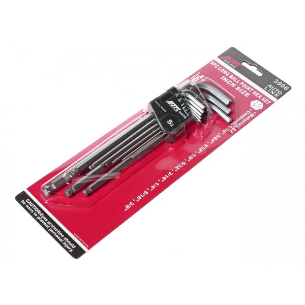Набор ключей шестигранных с шаровидным наконечником 1/16-3/8" 9ед. 3506 JTC