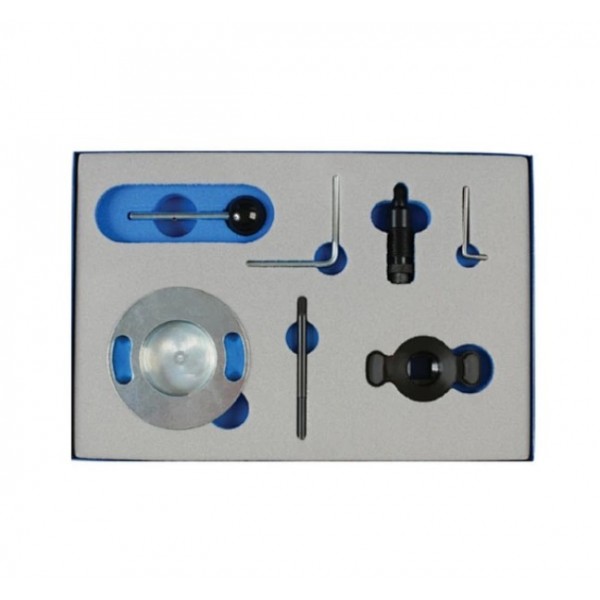 Комплект состоит из 7 предметов и включает в себя все необходимые инструменты для снятия цепи, проверки и регулировки фаз газораспределения.